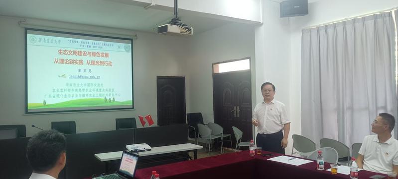 随后,国际交流处处长章家恩作了 “生态文明建设与绿色发展:从理论到实践、从理念到行动”的主题报告。他结合人类文明演进脉络,从生态学角度与视野,对习近平生态文明思想进行了领学与解读,深入解析了“人与自然生命共同体”“绿水青山就是金山银山”“山水林田湖草沙系统治理”等重要思想的科学内涵与实践案例。随后,他结合自己承担的国家级和省部级科研项目,分享了其团队在稻田生态种养(“禾下经济”)、旱坡地立体复合农林业(“林下经济”)、水稻主粮作物大面积单产提升以及外来生物入侵防控等领域的理论与实践成果,展示了绿色农业发展与生态环境建设从理念到行动的创新活力与应用前景。